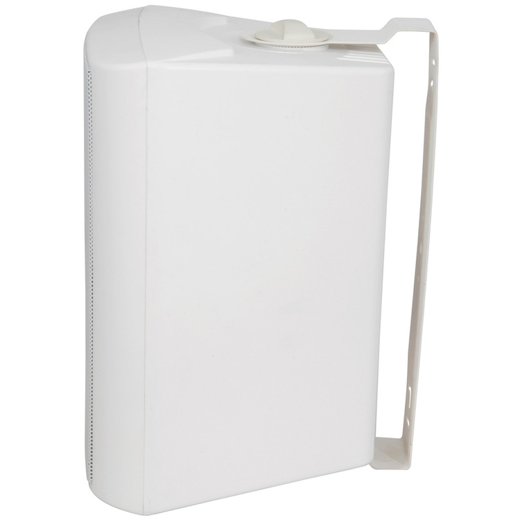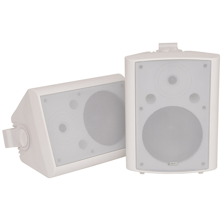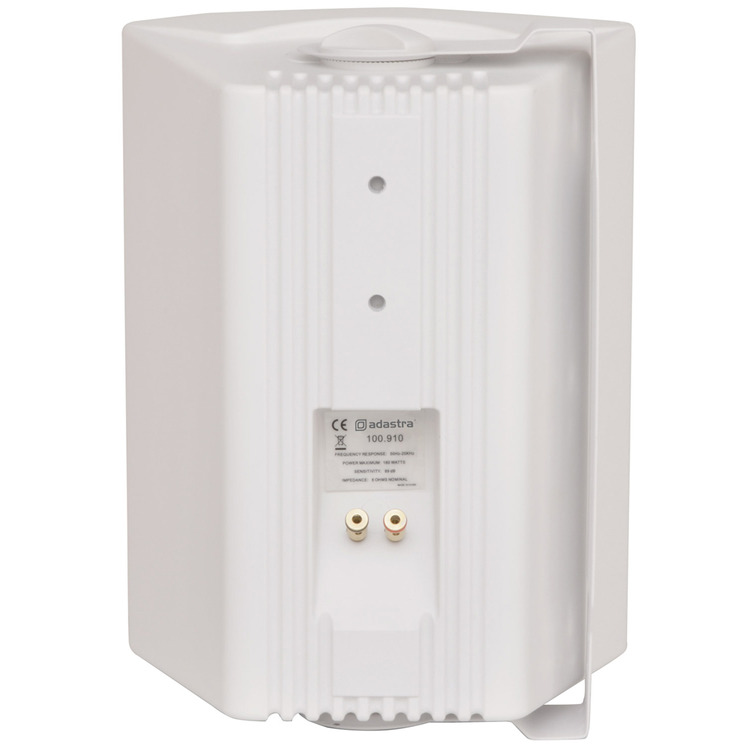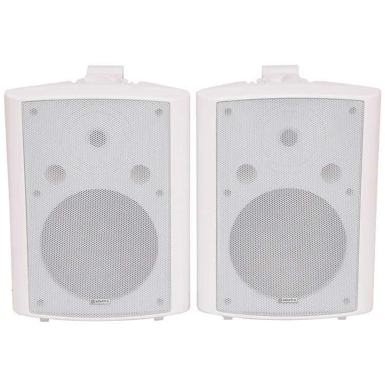 Industry standard white indoor speakers with ABS enclosures and a powder coated steel grille. Wall or ceiling surface mounting via the adjustable steel bracket. Each with standard 8 Ohms impedance and supplied in pairs for connection from a stereo amplifier.