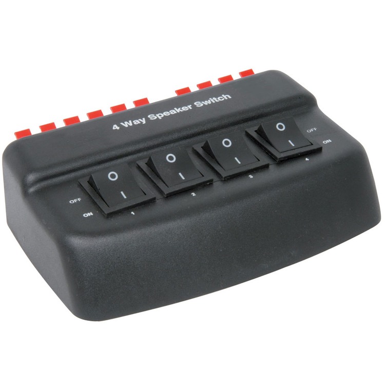 This range of compact switch allows for two or four pairs of speakers to be connected from one amplifier, giving the ability to select any pair individually or all together. This can be a quick solution for the zoning of a sound system or for adding extra speakers to a single amp.