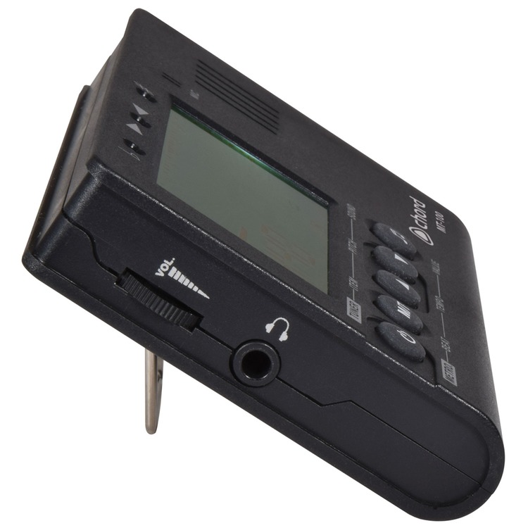 Combined digital metronome and tuner in a compact card-style handheld or desktop format. Powered by 2 x AAA batteries and with a flip out rear stand, the tempo clicks and pitch are produced either via a built-in speaker or through the headphone output jack. In metronome mode, the LCD display shows a virtual pendulum with multiple time signatures and beat type options through a wide range of tempo settings.