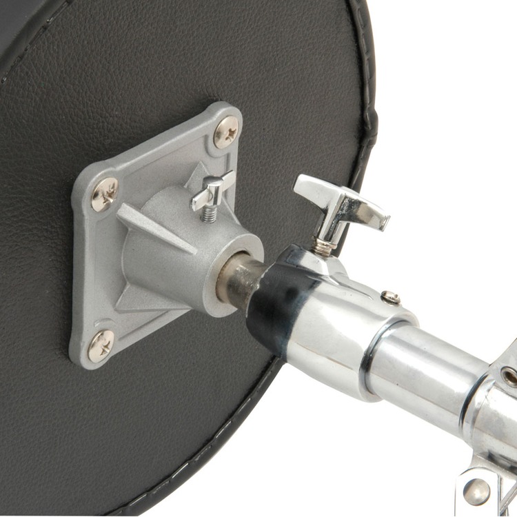 Heavy duty round drum throne with deep padded 280mm seat and black vinyl covering.