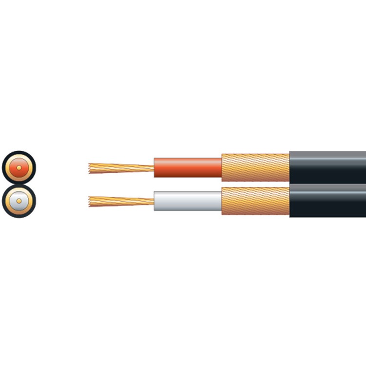 2 core figure 8 screened audio cable. Highly flexible PVC sheath which is easy to strip and separate. Supplied on strong reels in 100m lengths.