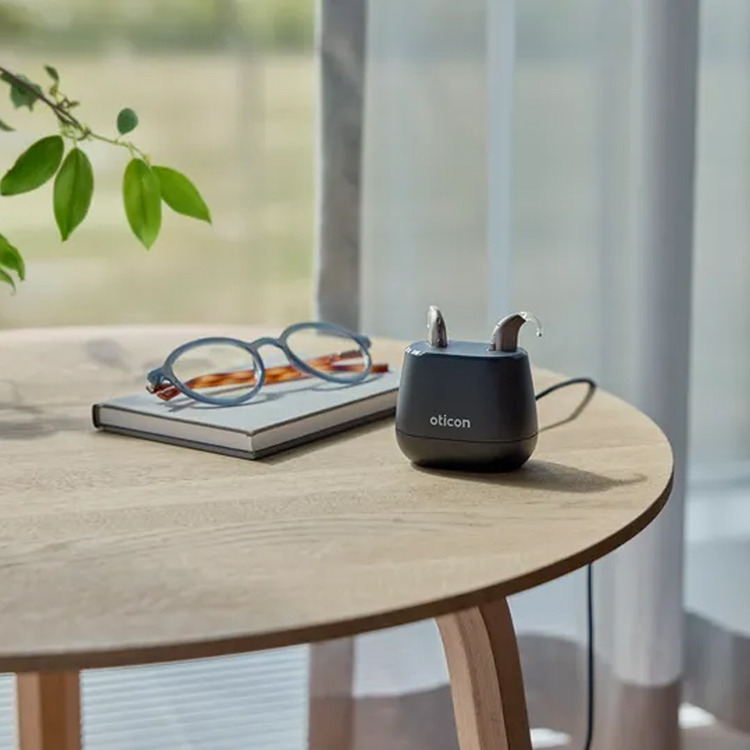 This contact charger has been designed from the ground up to be fast, discreet, stable, and pleasing to the eye. With the new desktop charger, Oticon Intent users can enjoy a full day's charge* in two hours, or up to four hours of power in only 15 minutes.