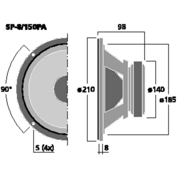 PA bass-midrange speaker, 300Wmax, 150Wrms, 8Ω