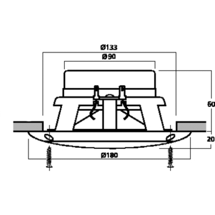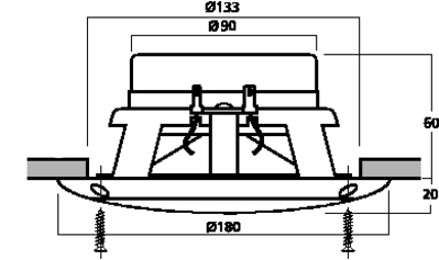 A wide range ceiling speaker with 13cm (5.25") polypropylene...