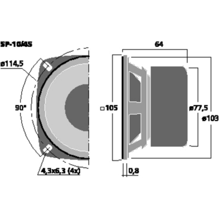 Magnetically shielded universal speaker, 25WMAX, 15WRMS, 4Ω