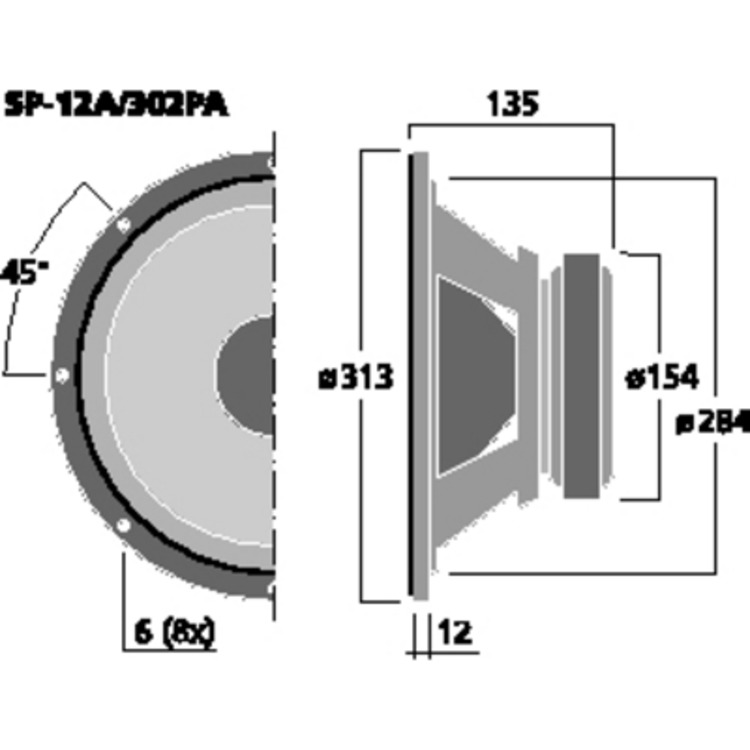 Professional PA bass-midrange speaker, 600Wmax, 300Wrms, 8, 30cm (12")
