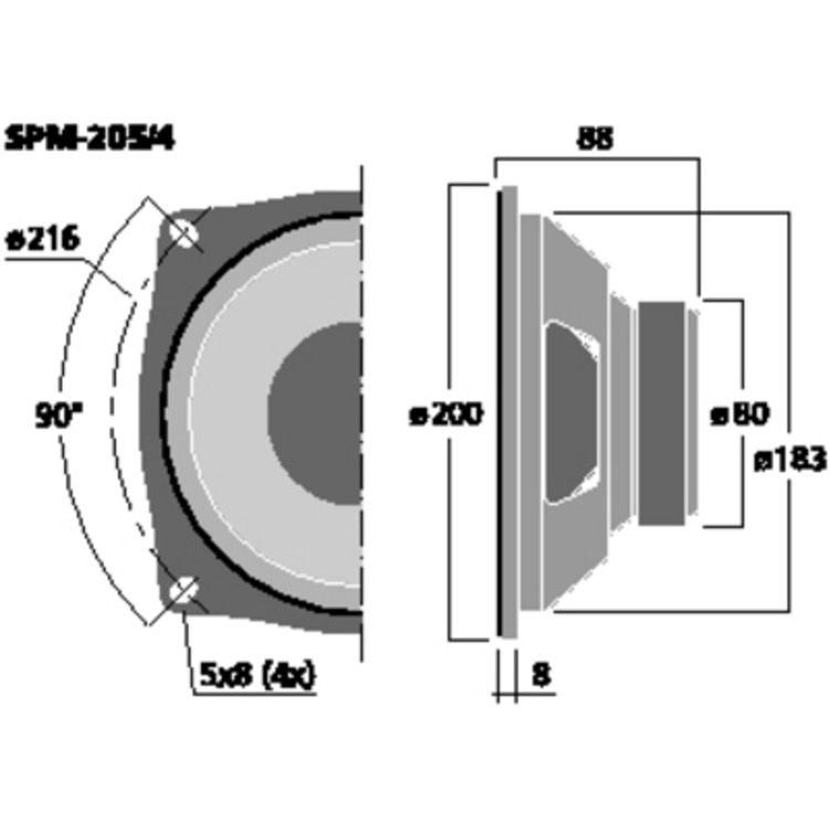 Hi-Fi bass-midrange speaker, 150WMAX, 70WRMS, 4 Ω