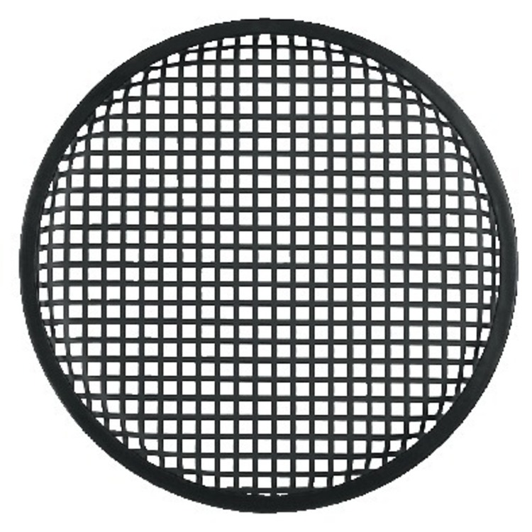 Classic round shape with square perforation and rubber rim, black lacquered metal to be fixed with clamps, of high stability.