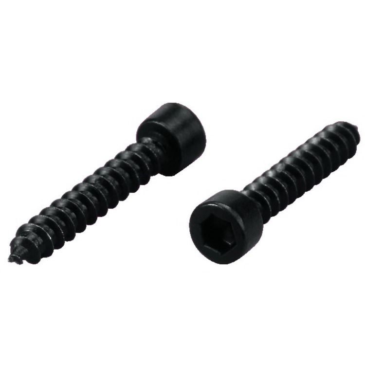 Black self-cutting hexagon socket wood screws for stable and elegant speaker mounting.