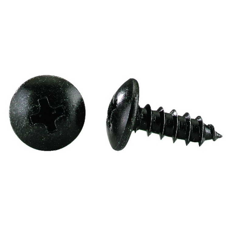 Black self-cutting 3.5 x 12 mm wood screws with flat recessed half-round head. Ideal for speaker mounting and general DIY applications.