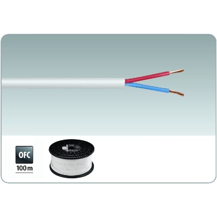 100 metres 100V line white speaker cable, 2x 1.5mm