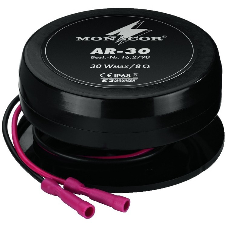 Vibration of these surfaces already create a partly impressive sound in the entire surrounding area. These resonators are not suitable for use on glass surfaces! Weatherproof audio exciters/resonators, 8 Ohm