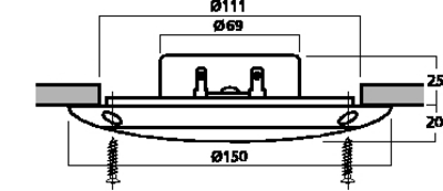 | Mounting cutout | 111 mm diameter |