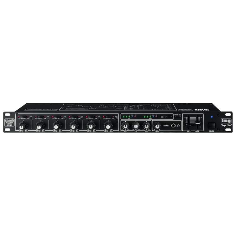Rack-mountable 1U mixer with 4 mic inputs and 3 auxiliary...