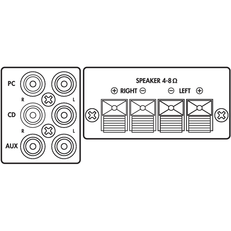 CD: RCA L/R aux: RCA L/R player: 3.5 mm jack speaker: spring-load. speaker term. |