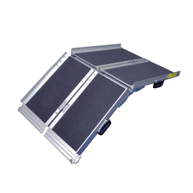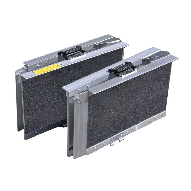 The tri-fold ramp is supplied in two parts that can be easily slotted together and is constructed from sturdy, rust-free aluminium with strong carrying handles attached, making the unit portable and convenient to store.