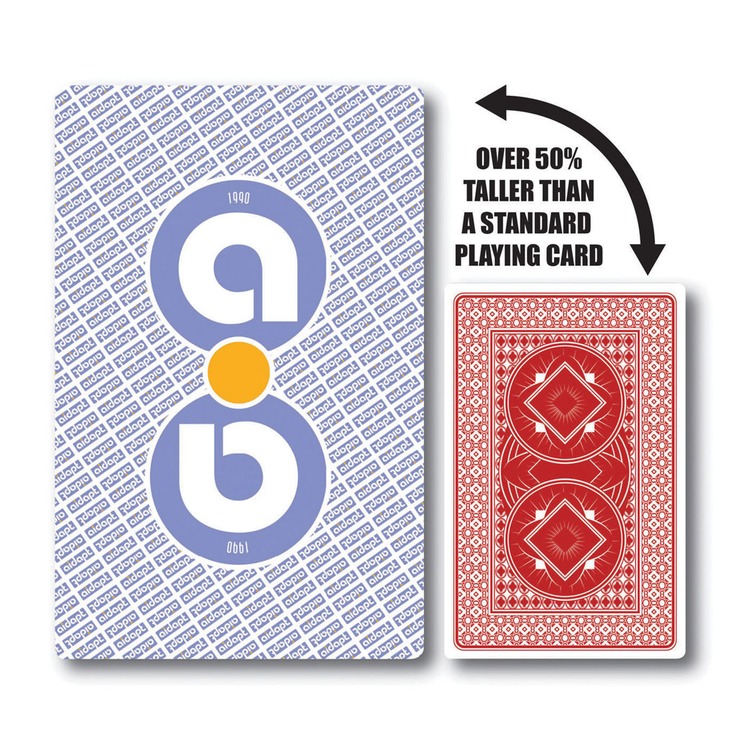Jumbo, hard-wearing, laminated paper playing cards, more than 50% taller than an average playing card. The large design makes the cards easier to hold and see and they are ideal for standard or casino style games.