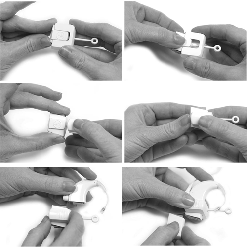 The Naida CI Listening Check attaches directly to the Naida CI processor quickly and easily. Firstly, remove the battery pack from the Naida CI processor and slide on the Listening Check, then slide the battery pack onto the bottom of the Listening Check - effectively 'sandwiching' the Listening Check between the processor and the battery. Suitable for use with all types of Naida CI battery (PowerCels, Zn-Air Battery Pak, AAA/03 PowerPak or Off-the-Ear Power Options).