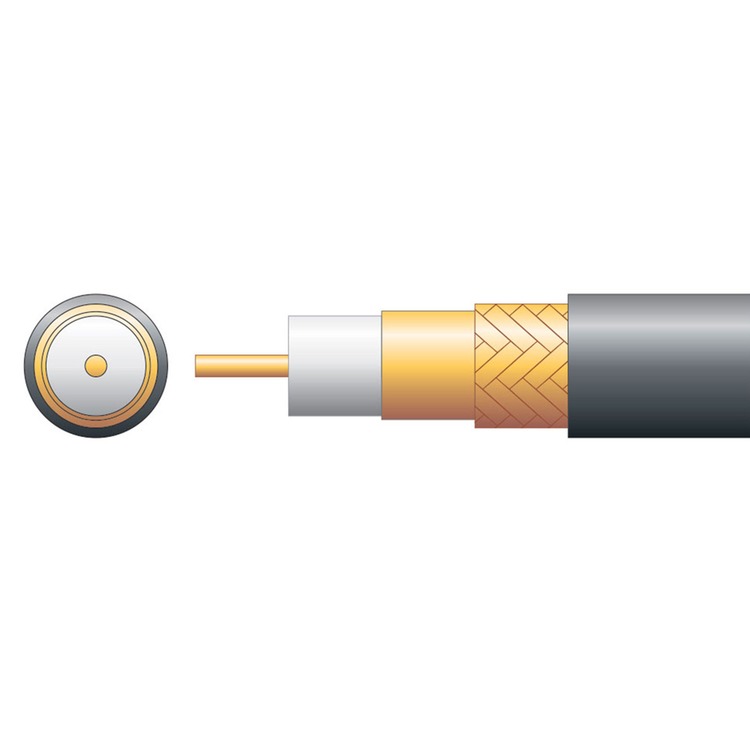 75 Ohms black 100U coaxial cable constructed of solid oxygen free copper conductor, foam filled polyethylene dielectric, copper foil screen, copper clad aluminium braid and PVC sheath. The overall screen and braid significantly reduce noise penetration to the conductor making it suitable for digital, satellite and cable TV signal transmission.