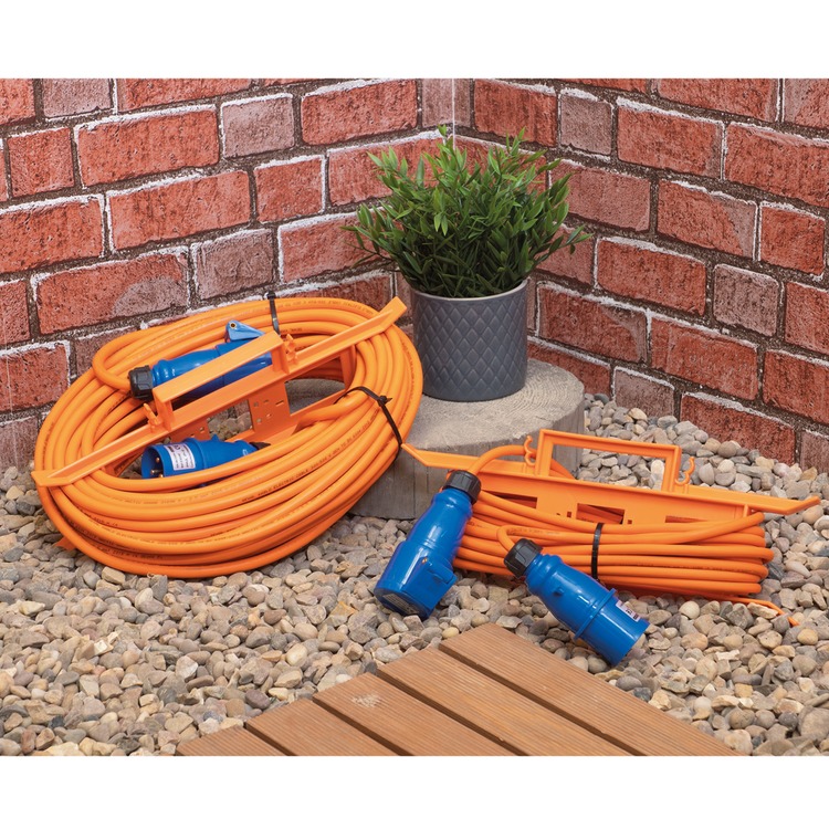 16A 25 metre high current extension lead with Orange 1.5mm Cable high current mains extension lead.